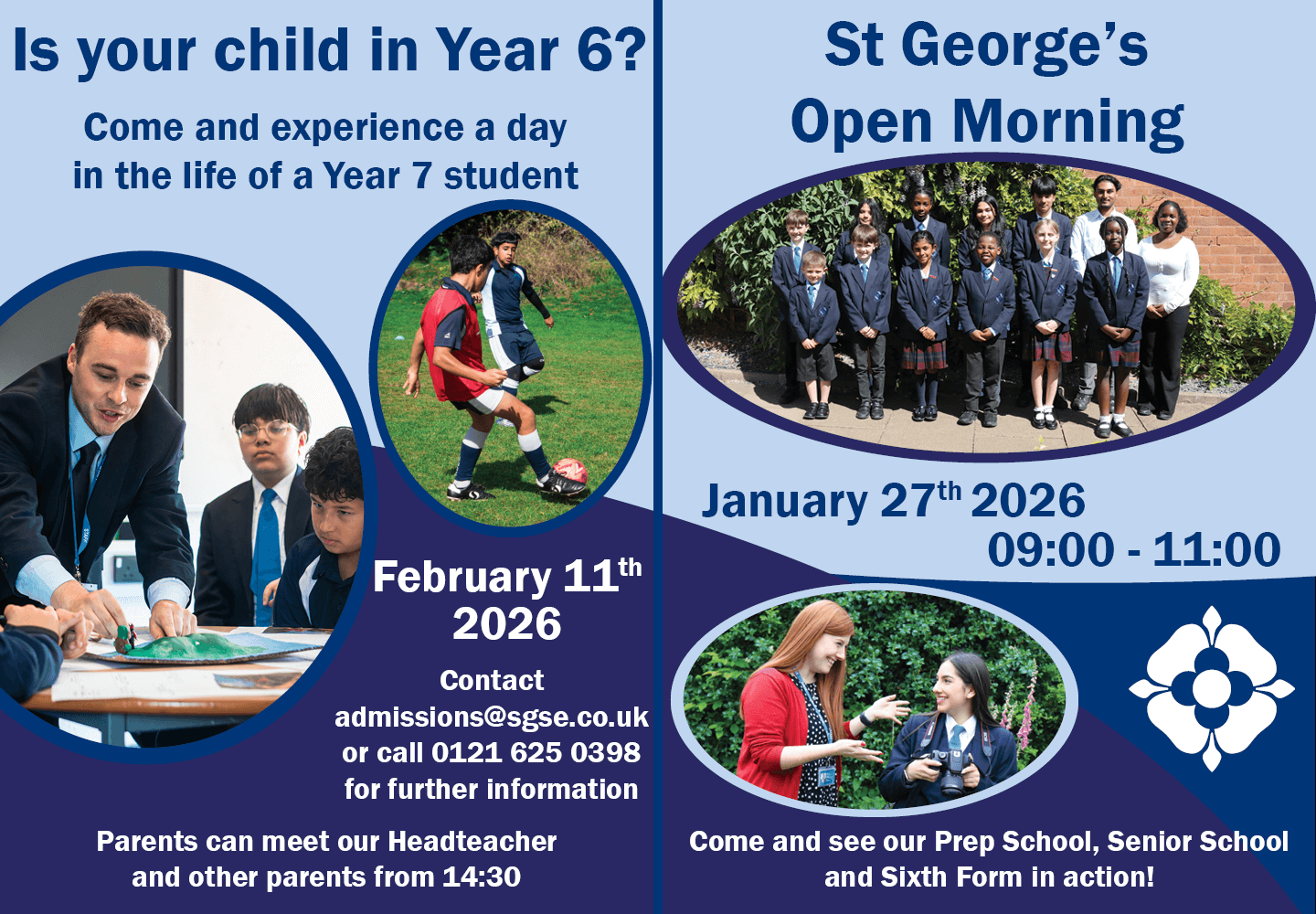 St George’s, located near Birmingham’s city centre on the Calthorpe Estate, offers extensive, landscaped grounds and excellent transport links, making it accessible to students from across Birmingham and surrounding boroughs. Reflecting the city’s vibrant multicultural community, we welcome people of all faiths or none.